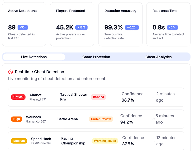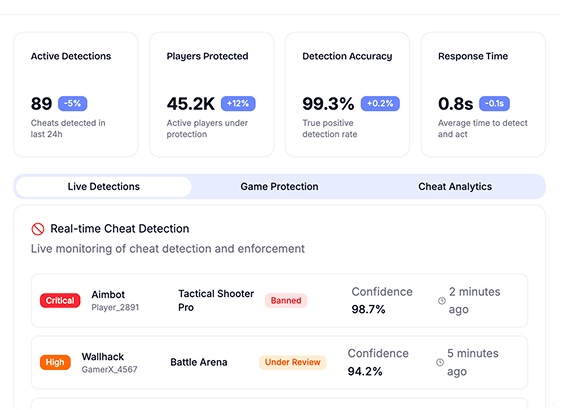 Multiplayer titles, esports platforms, and studios that require scalable, low-latency cheat prevention.