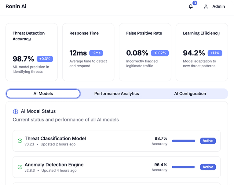 Kenshi is built for digital platforms where performance, protection, and precision must operate together. Our systems adapt in real time, integrate cleanly with your architecture, and respond to threats with clarity and control.